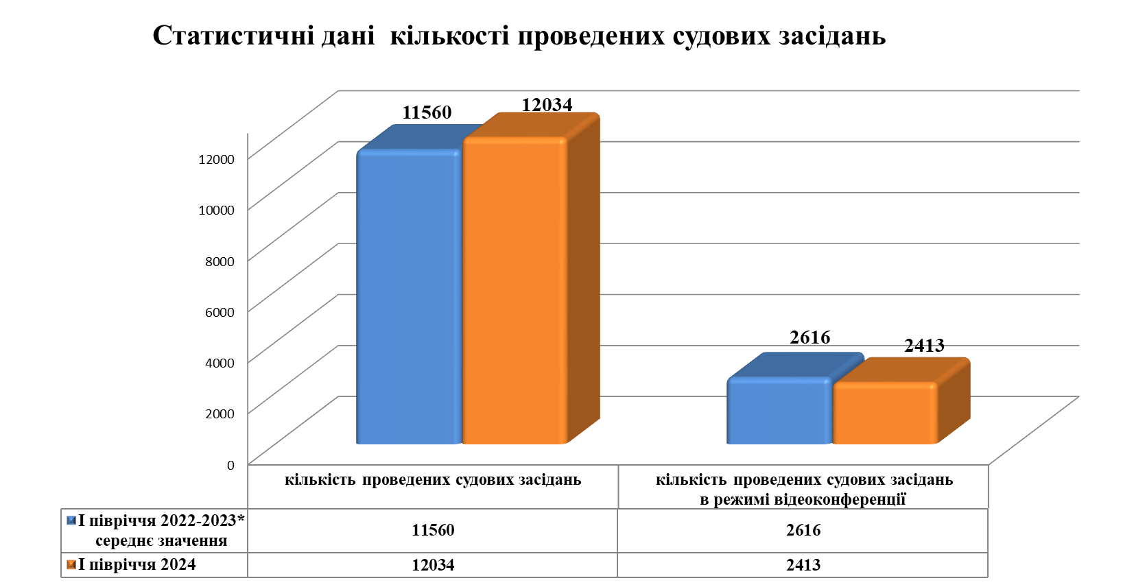 Пропонуємо до огляду інформацію щодо загальних показників роботи суду за перше півріччя 2024 року, зокрема, основних показників здійснення судочинства, даних про документообіг суду, кількості судових засідань, у тому числі проведених в режимі відеоконференції.