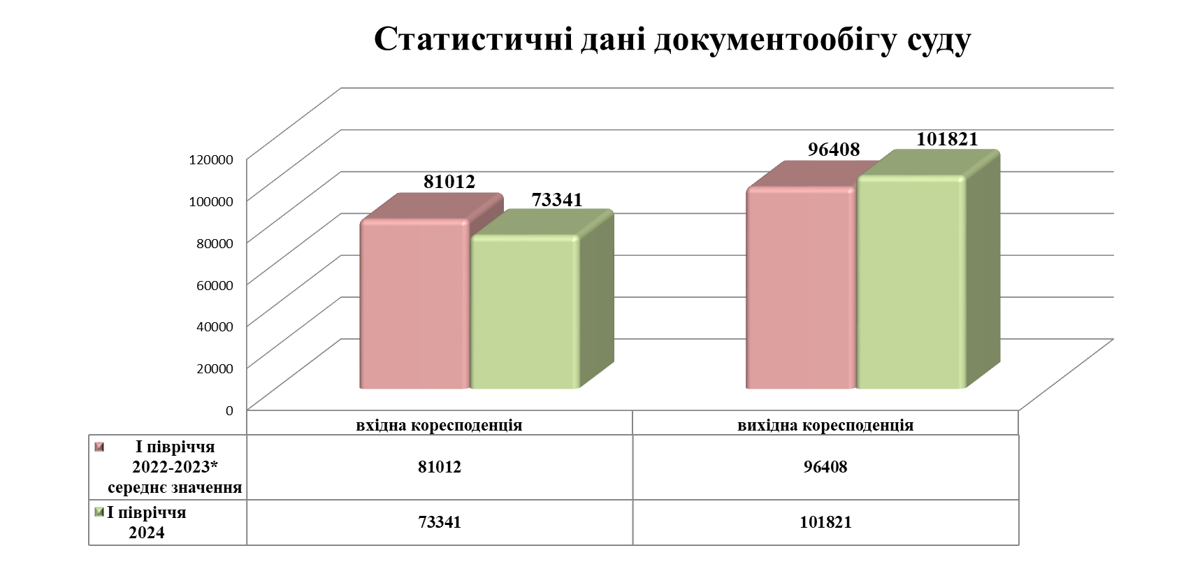 Документообіг Господарського суду міста Києва за перше півріччя 2024 року становив 175 162 одиниці загальної кореспонденції, з яких 73 341 складали документи вхідної кореспонденції та 101 821 – вихідної кореспонденції.