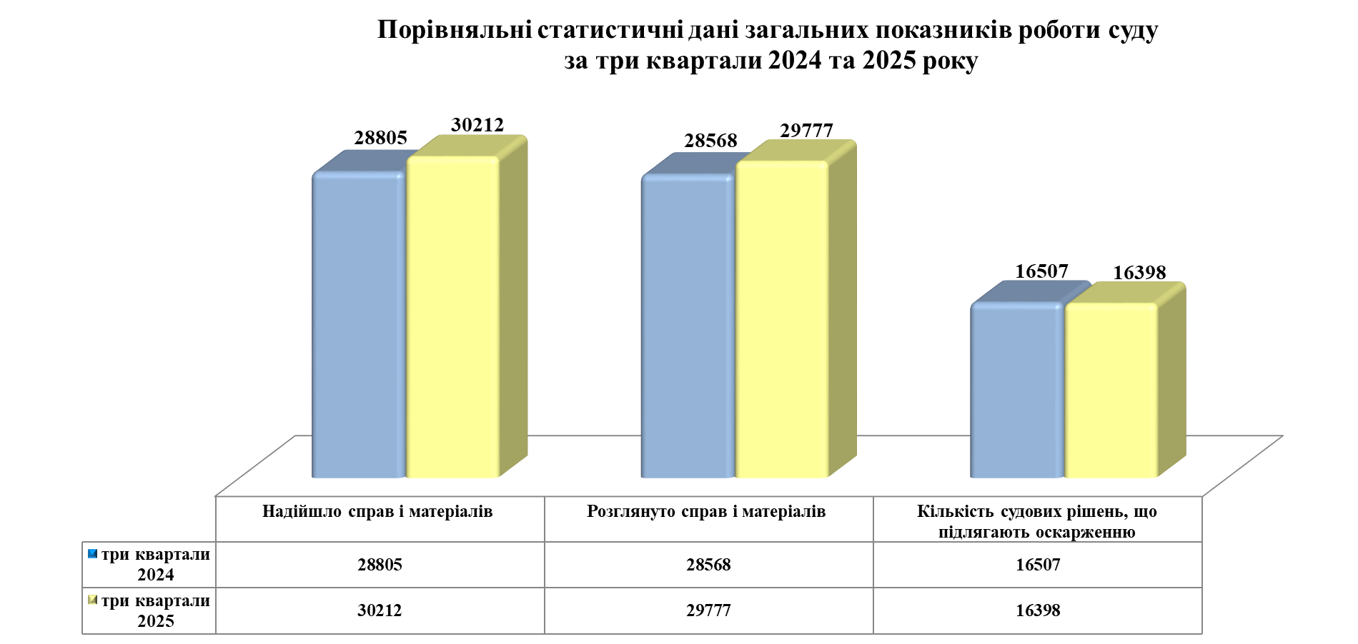Упродовж трьох кварталів 2025 року до Господарського суду міста Києва надійшло 30 2012 справ та матеріалів. Важливо відзначити, що за цей же період суд розглянув по суті 29 777 справ та матеріалів. У звітному періоді судді ухвалили 16 398 судових рішень, які можуть бути оскаржені.